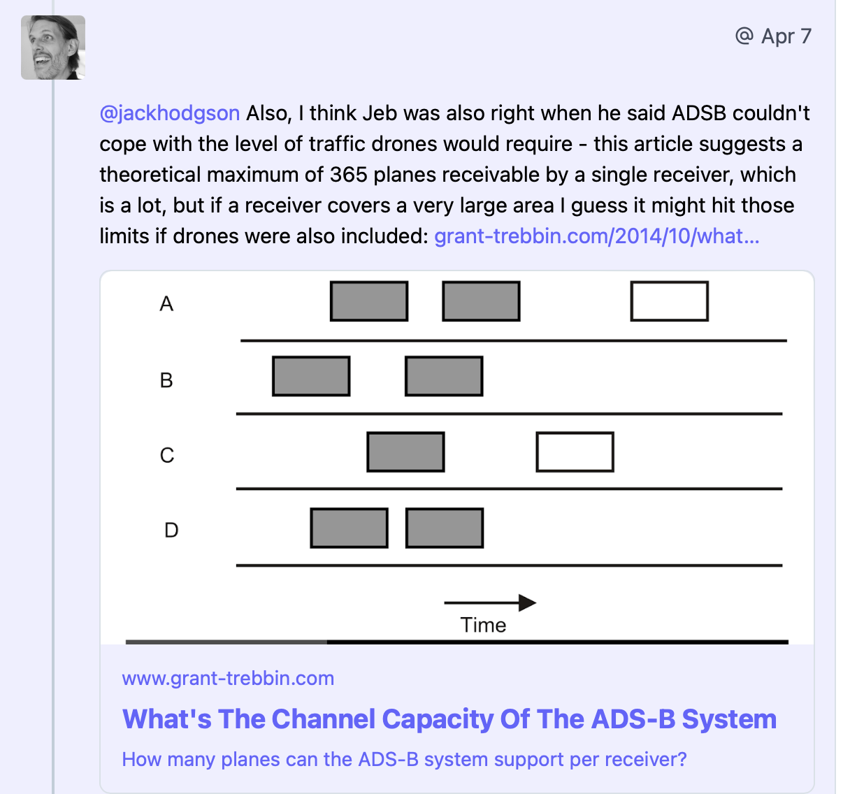 Link in his posting is: whats-channel-capacity-of-ads-b-system